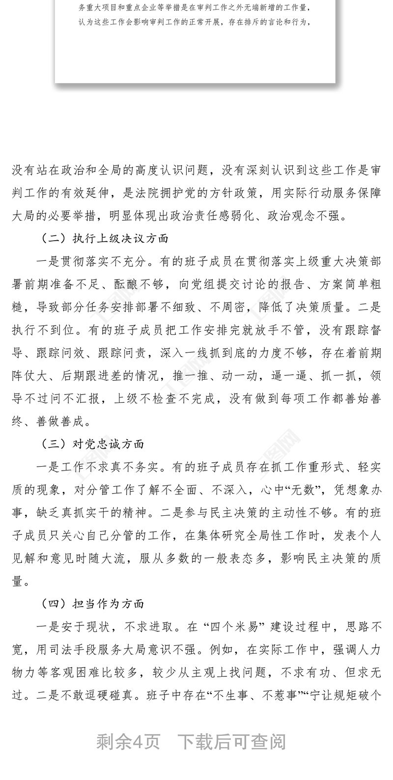 工圖網(wǎng)提供2021法院領(lǐng)導(dǎo)班子民主生活會(huì)對(duì)照檢查材料供會(huì)員免費(fèi)下載。更多精彩黨課PPT素材,盡在工圖網(wǎng)。