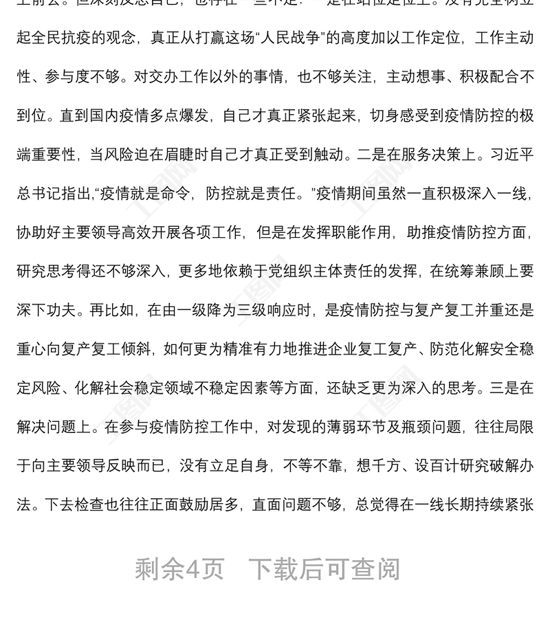 工圖網(wǎng)提供縣委常委疫情防控專題民主生活會個人對照檢查材料供會員免費下載。更多精彩黨課PPT素材,盡在工圖網(wǎng)。