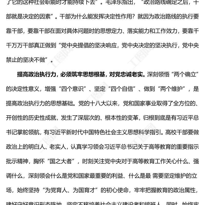 年輕干部要不斷提高政治執(zhí)行力PPT大氣簡(jiǎn)潔年輕干部思想教育專題課件(講稿)