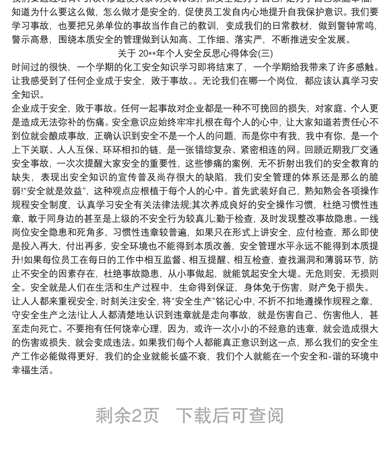 關(guān)于20xx年個(gè)人安全反思心得體會(huì)三篇精選