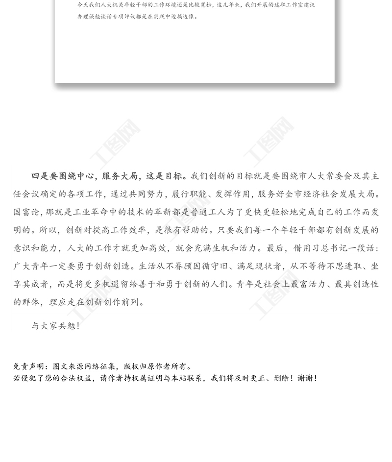 工圖網(wǎng)提供在市人大機(jī)關(guān)“五四”青年干部思想交流座談會(huì)上的發(fā)言供會(huì)員免費(fèi)下載。更多精彩黨課PPT素材,盡在工圖網(wǎng)。