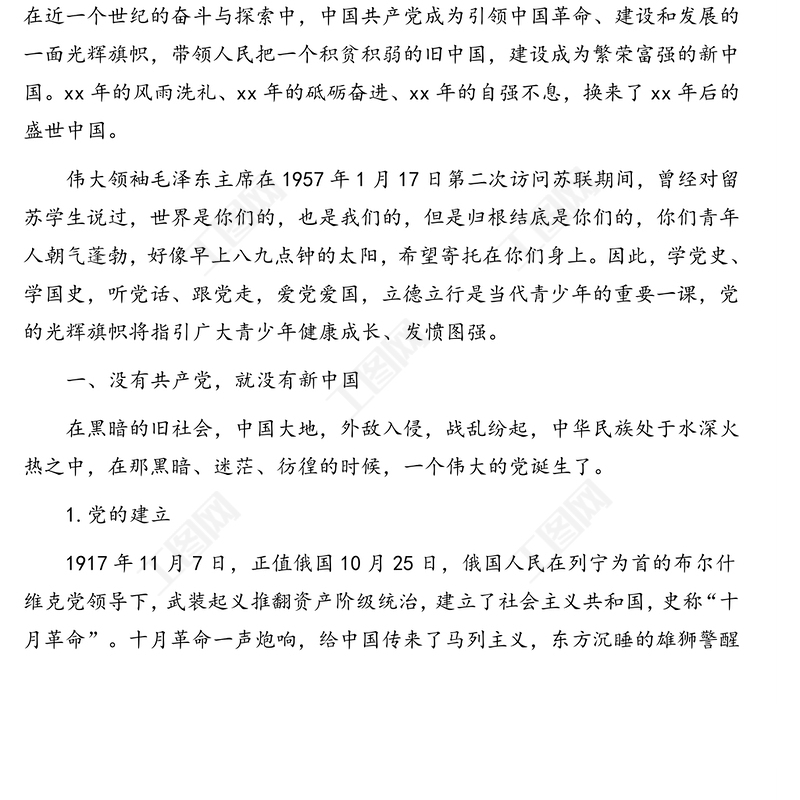 工圖網(wǎng)提供國慶節(jié)專題黨課講稿:學黨史學國史,聽黨話跟黨走,愛黨愛國供會員免費下載。更多精彩黨課PPT素材,盡在工圖網(wǎng)。