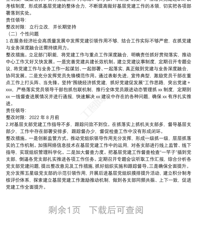 工圖網(wǎng)提供2021年度黨(工)委(黨組)書記抓基層黨建工作述職評議反饋問題的整改方案供會員免費下載。更多精彩黨課PPT素材,盡在工圖網(wǎng)。