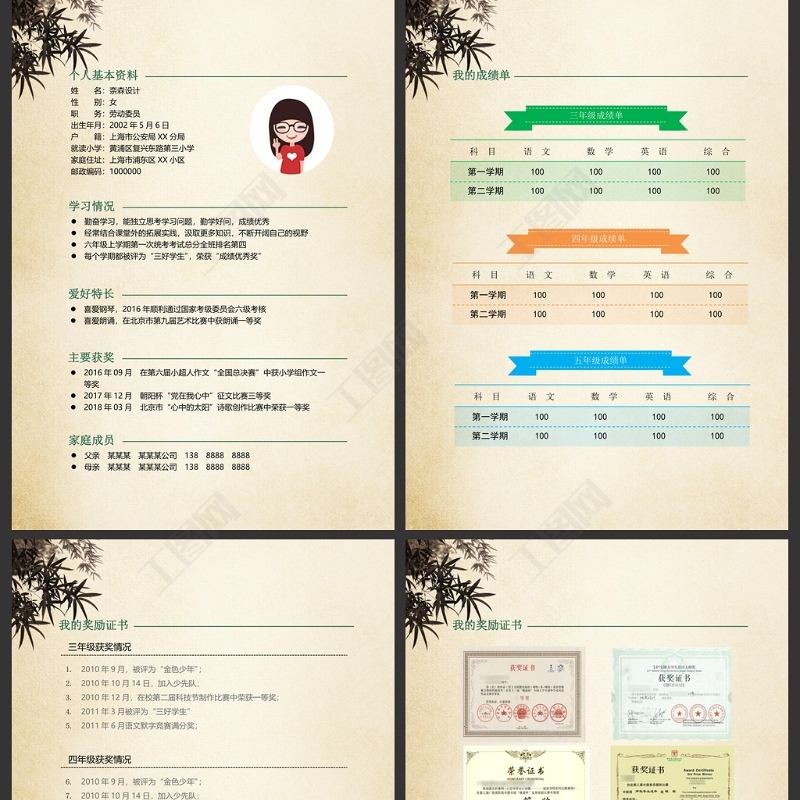 小升初簡歷小學(xué)生個人簡歷幼升小兒童簡歷2包含