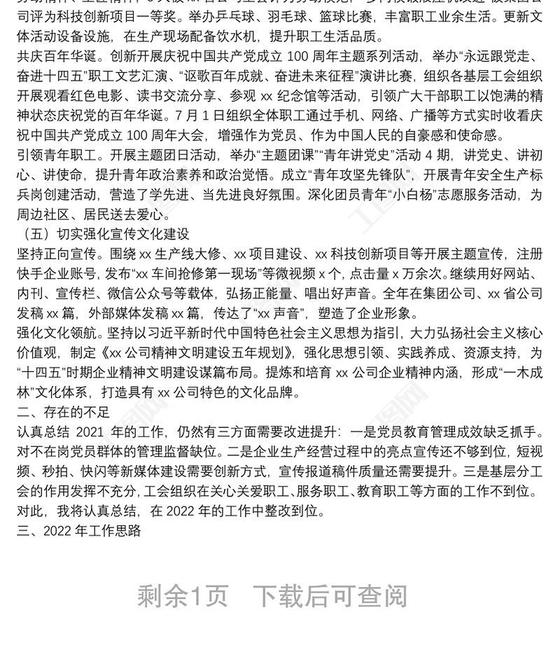 工圖網(wǎng)提供公司黨群工作部主任2021年述職報告和2022年工作思路供會員免費下載。更多精彩黨課PPT素材,盡在工圖網(wǎng)。