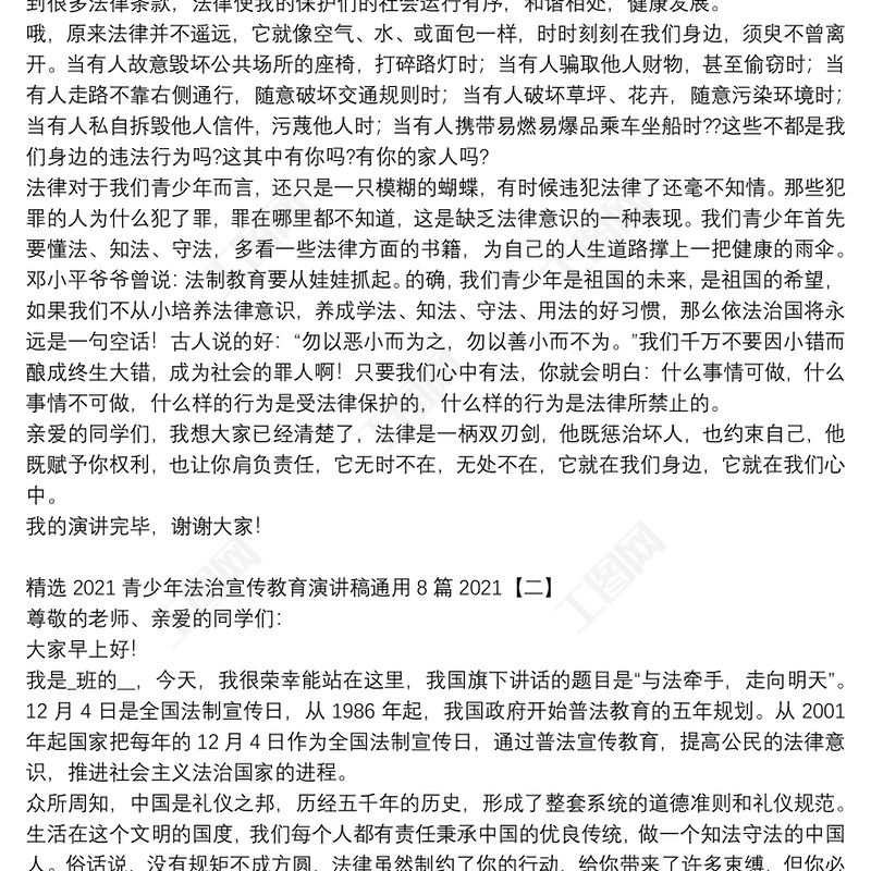 工圖網(wǎng)提供精選2021青少年法治宣傳教育演講稿通用8篇2021供會員免費下載。更多精彩黨課PPT素材,盡在工圖網(wǎng)。