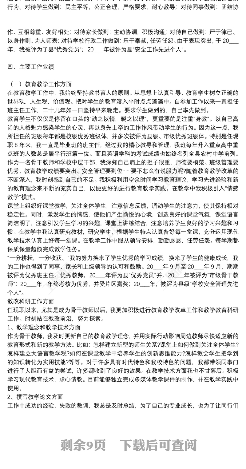 高級(jí)職稱述職報(bào)告參考模板2021 Array