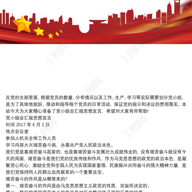 工圖網(wǎng)提供黨小組會(huì)匯報(bào)思想發(fā)言供會(huì)員免費(fèi)下載。更多精彩黨課PPT素材,盡在工圖網(wǎng)。