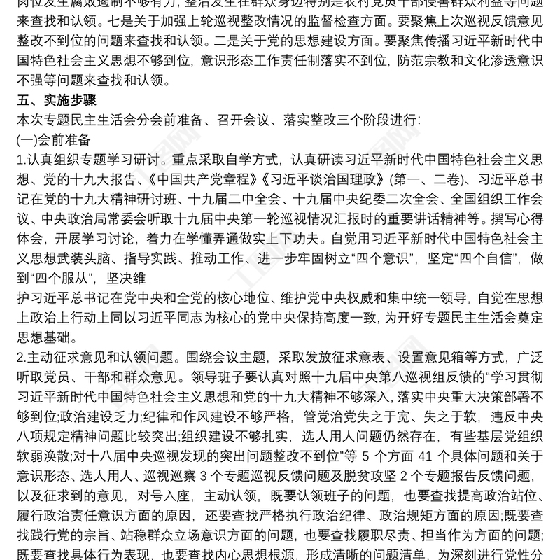 “省委第三輪巡視反饋問題整改落實(shí)”專題民主生活會(huì)會(huì)前談心談話方案