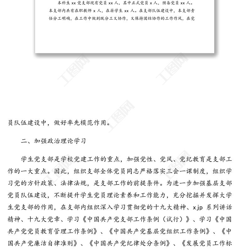 工圖網(wǎng)提供黨支部2020年工作總結(jié)和2021年工作計(jì)劃匯編(3篇)(高校)供會(huì)員免費(fèi)下載。更多精彩黨課PPT素材,盡在工圖網(wǎng)。