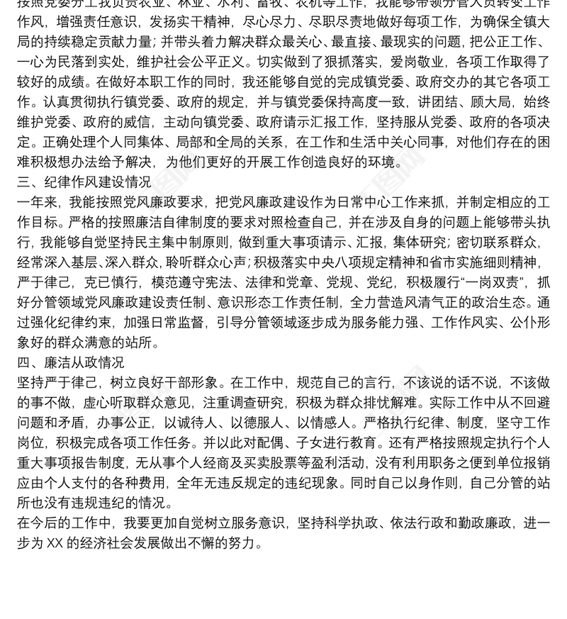 鄉(xiāng)鎮(zhèn)副鎮(zhèn)長(zhǎng)述責(zé)述廉報(bào)告