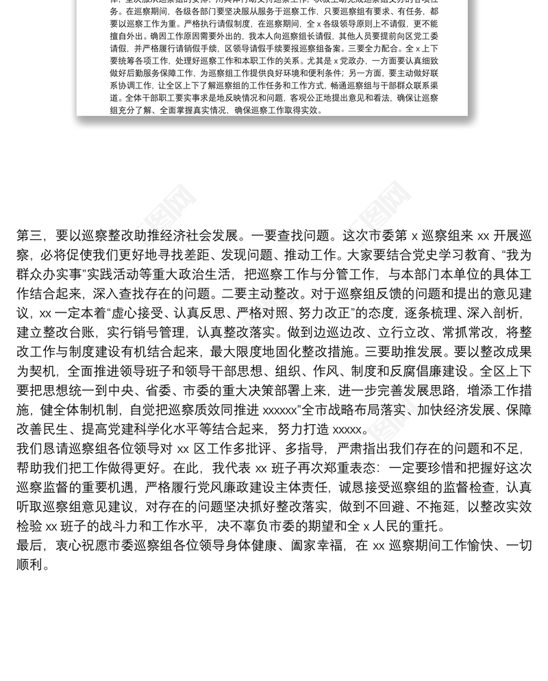 在市委第x巡察組巡察動員會上的表態(tài)發(fā)言