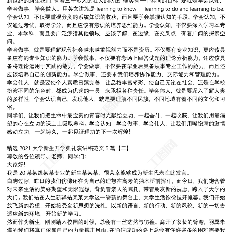 工圖網(wǎng)提供精選2021大學(xué)新生開學(xué)典禮演講稿范文5篇供會(huì)員免費(fèi)下載。更多精彩黨課PPT素材,盡在工圖網(wǎng)。