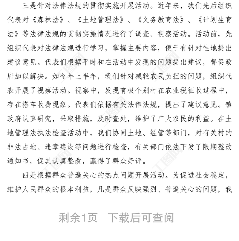 2021(鄉(xiāng)鎮(zhèn)人大)積極開展代表活動充分發(fā)揮代表作用
