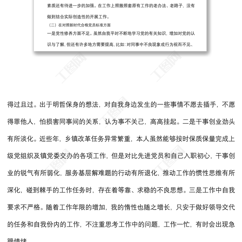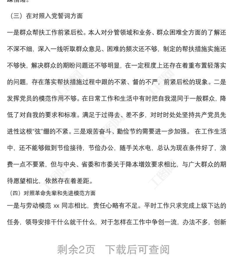 工圖網(wǎng)提供機(jī)關(guān)黨支部黨員2021年組織生活會“四個(gè)對照”發(fā)言提綱供會員免費(fèi)下載。更多精彩黨課PPT素材,盡在工圖網(wǎng)。
