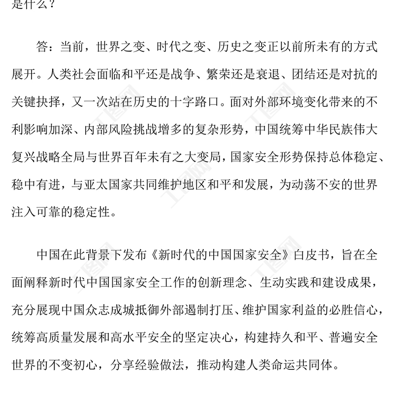 工圖網(wǎng)提供一文讀懂《新時(shí)代的中國國家安全》白皮書PPT課件(講稿)供會員免費(fèi)下載。更多精彩黨課PPT素材,盡在工圖網(wǎng)。