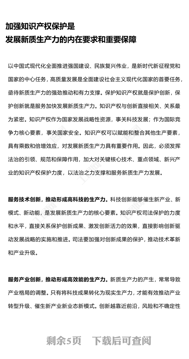 為新質(zhì)生產(chǎn)力發(fā)展提供有力知識產(chǎn)權(quán)司法保護(hù)PPT精美簡潔法院學(xué)習(xí)專題課件(講稿)