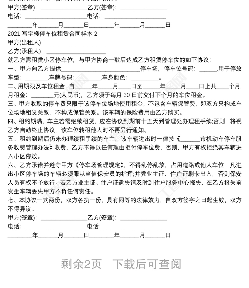 2021寫(xiě)字樓停車(chē)位租賃合同樣本 Array