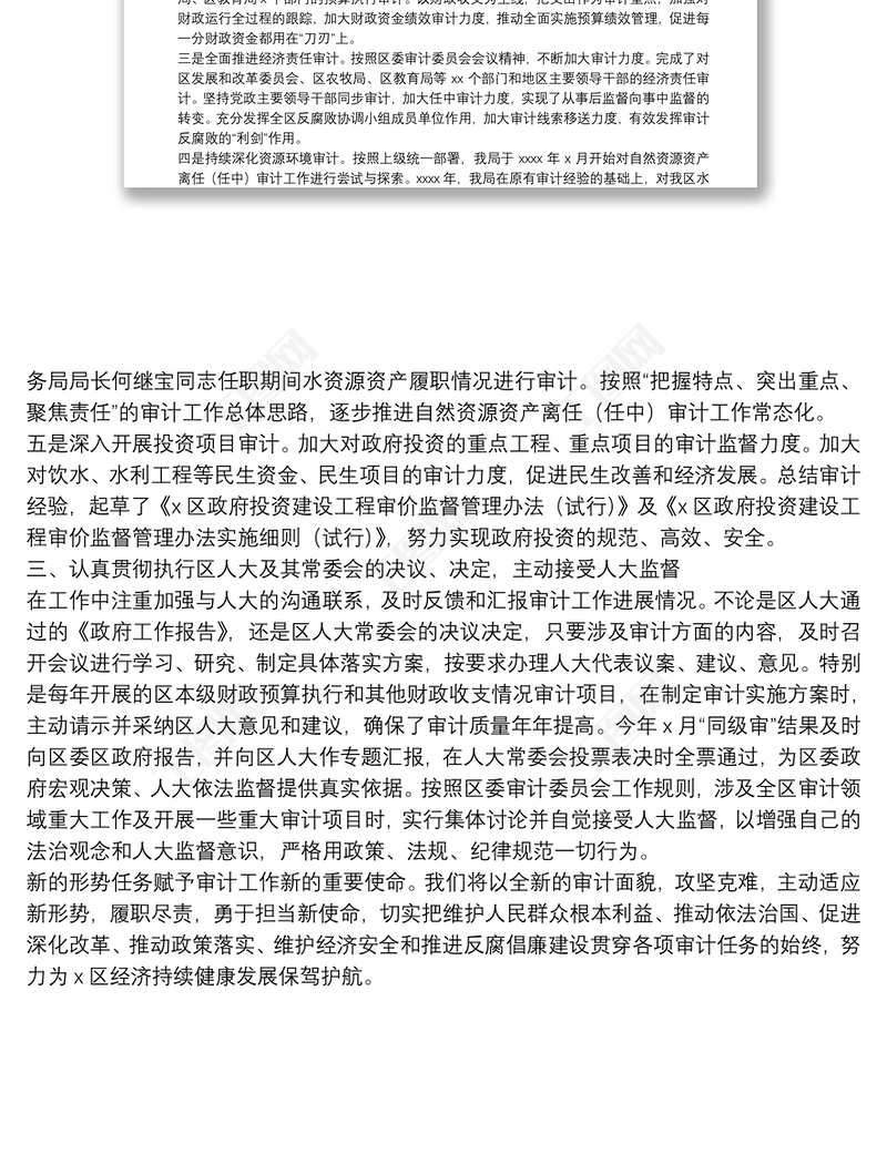 區(qū)審計(jì)局局長(zhǎng)述職報(bào)告