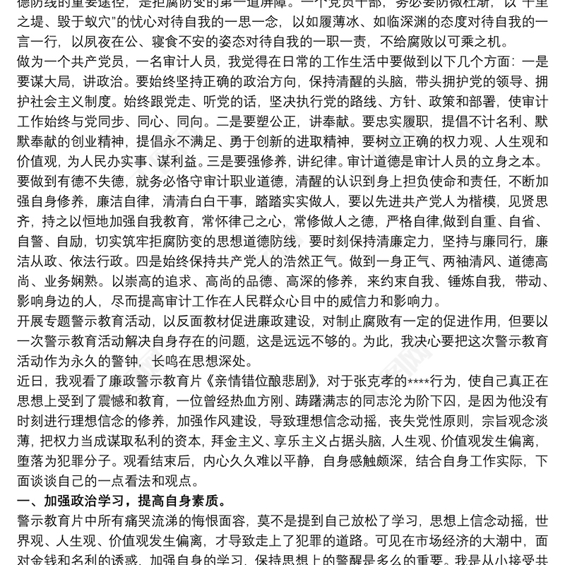 廉政警示教育片觀后感及心得參考例文8篇包含