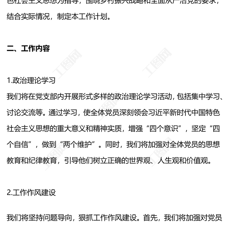 2024農村基層支部年度工作計劃PPT紅色精美黨建計劃模板(講稿) Array