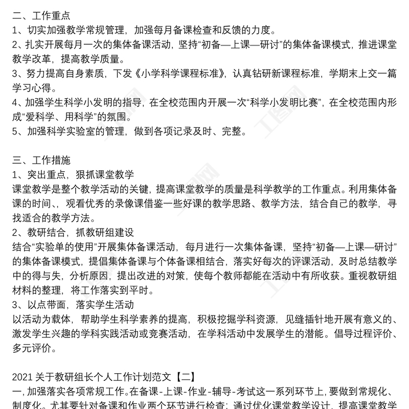 2021關(guān)于教研組長個(gè)人工作計(jì)劃范文