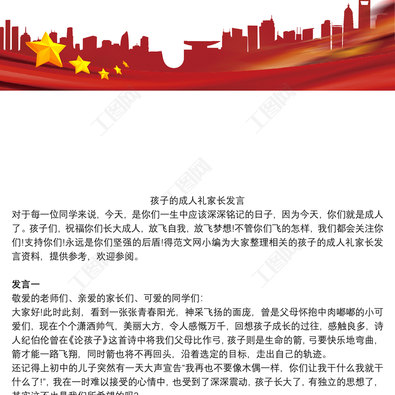 工圖網(wǎng)提供孩子的成人禮家長(zhǎng)發(fā)言供會(huì)員免費(fèi)下載。更多精彩黨課PPT素材,盡在工圖網(wǎng)。