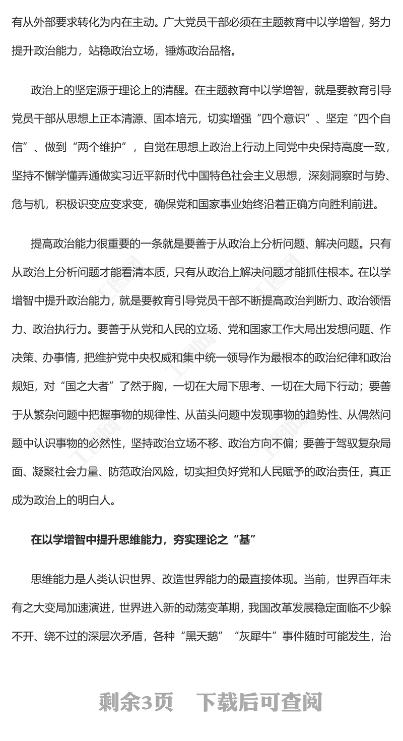 > 黨課講稿 > 2023在以學(xué)增智中不斷提升“三種能力”PPT大氣精美風(fēng)黨員干部學(xué)習(xí)教育專題黨課課件(講稿).DOCX 【圖片、文字、動畫均可編輯】