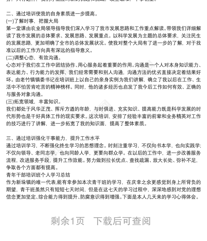 青年干部培訓(xùn)班個(gè)人學(xué)習(xí)總結(jié)