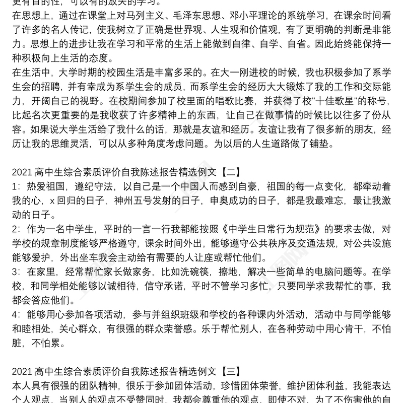 2021高中生綜合素質(zhì)評(píng)價(jià)自我陳述報(bào)告精選例文 Array