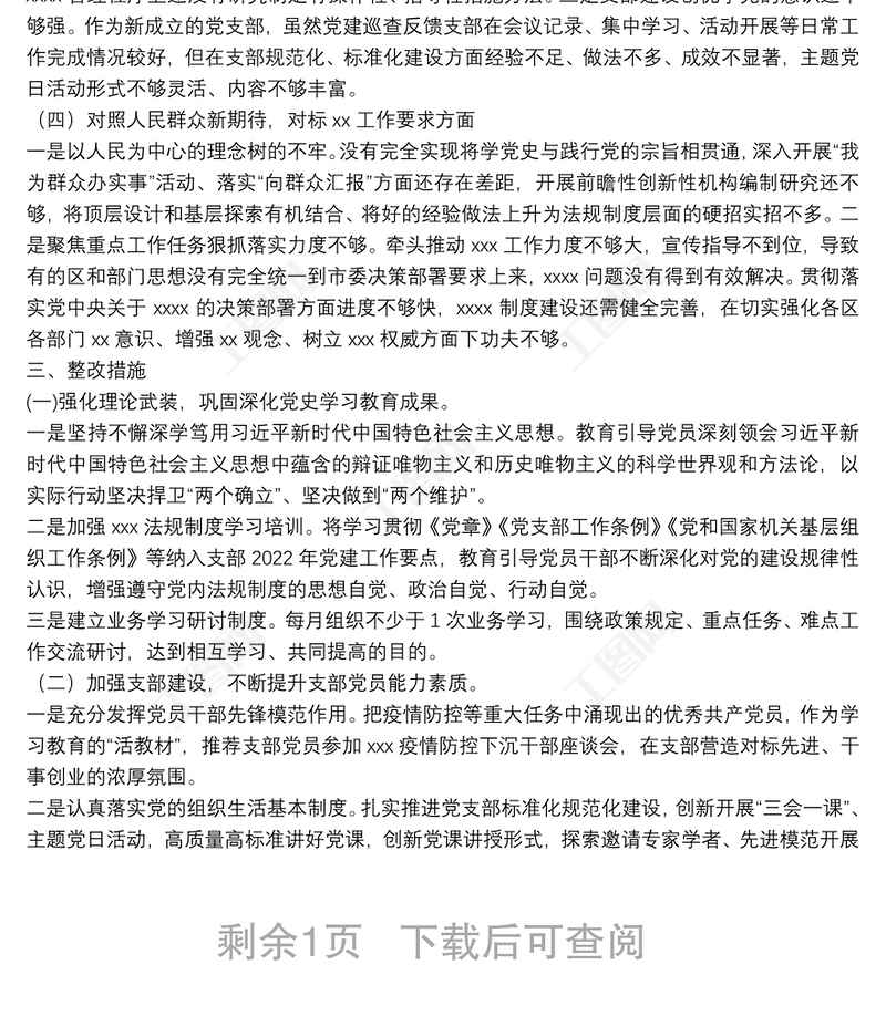 > 對(duì)照檢查 > 黨支部班子2022年度組織生活會(huì)四個(gè)對(duì)照班子對(duì)照檢查材料.DOCX 【圖片、文字、動(dòng)畫(huà)均可編輯】