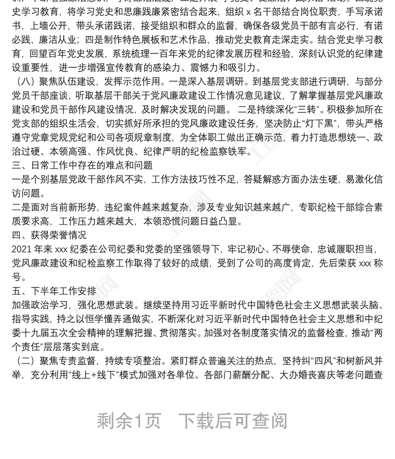 2021年上半年工作總結(jié) 一 學(xué)習(xí)黨史2021公安機(jī)關(guān)黨支部書記半年工作總結(jié)2021年學(xué)校黨支部上半年黨史學(xué)習(xí)教育工作總結(jié)2021消防隊黨支部半年工作總結(jié)2021黨支部半年工作總結(jié)及黨史學(xué)習(xí)情況報告2021第一黨支部上半年工作總結(jié)幼兒園2021上半年黨史學(xué)習(xí)教育工作總結(jié)2022被巡察單位向巡察組的紀(jì)檢監(jiān)察專題匯報材料中石化2021黨支部半年工作總結(jié)2022年黨支部書記上半年工作總結(jié)2021鄉(xiāng)鎮(zhèn)衛(wèi)生院黨支部黨史學(xué)習(xí)教育半年工作總結(jié)2022監(jiān)獄紀(jì)檢監(jiān)察工作情況匯報2021年組織生活會半年工作總結(jié)2021紀(jì)檢監(jiān)察組監(jiān)督單位黨建工作總結(jié)2022巡察紀(jì)檢監(jiān)察專題匯報2023村級黨建半年工作總結(jié)