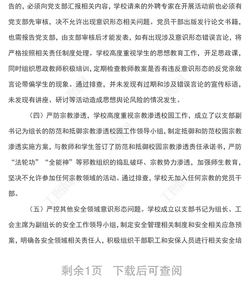 工圖網(wǎng)提供xx小學(xué)意識(shí)形態(tài)領(lǐng)域風(fēng)險(xiǎn)隱患排查報(bào)告供會(huì)員免費(fèi)下載。更多精彩黨課PPT素材,盡在工圖網(wǎng)。