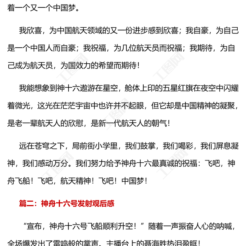 工圖網(wǎng)提供神舟十六號(hào)發(fā)射觀(guān)后感6篇供會(huì)員免費(fèi)下載。更多精彩黨課PPT素材,盡在工圖網(wǎng)。
