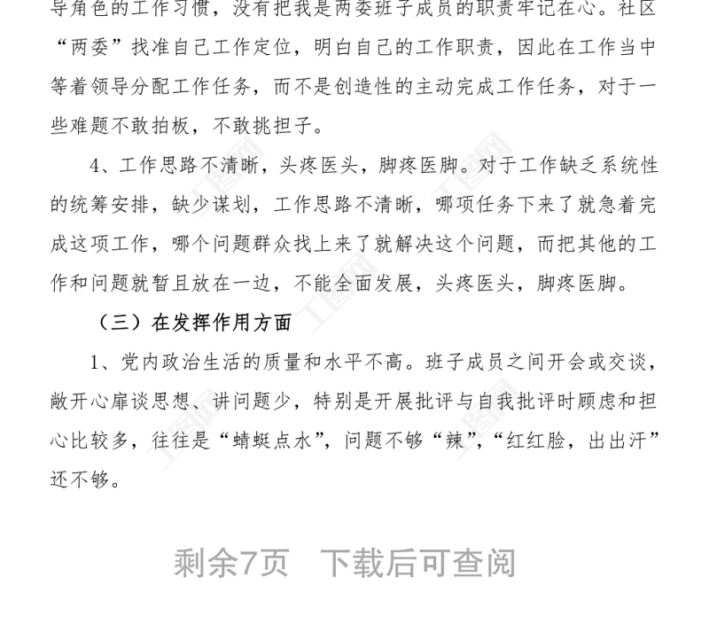 社區(qū)黨支部班子組織生活會對照檢查材料 社區(qū)黨支部班子組織生活會 對照檢查材 Array