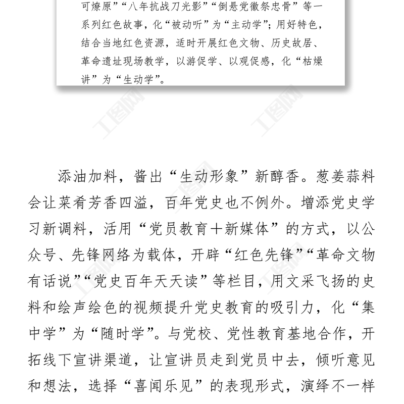 工圖網(wǎng)提供黨史學(xué)習(xí)教育信息簡報2篇供會員免費(fèi)下載。更多精彩黨課PPT素材,盡在工圖網(wǎng)。