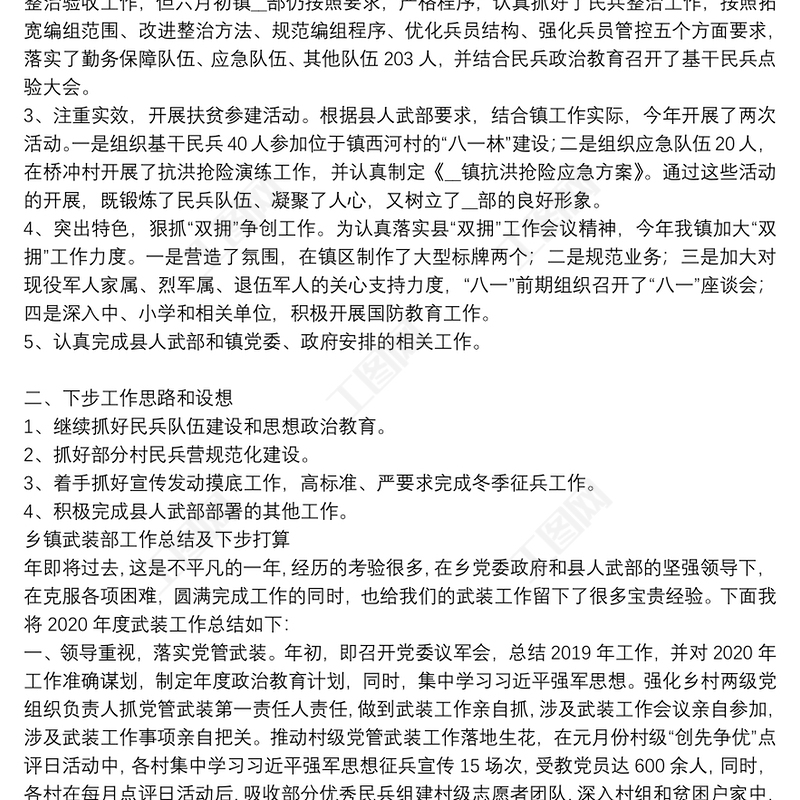 鄉(xiāng)鎮(zhèn)武裝部工作總結(jié)及下步打算