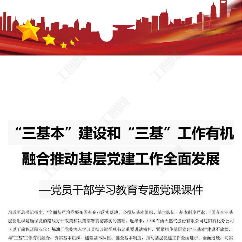 工圖網(wǎng)提供“三基本”建設(shè)和“三基”工作有機(jī)融合推動(dòng)基層黨建工作全面發(fā)展 黨員干部學(xué)習(xí)教育專題黨課演講稿供會(huì)員免費(fèi)下載。更多精彩黨課PPT素材,盡在工圖網(wǎng)。