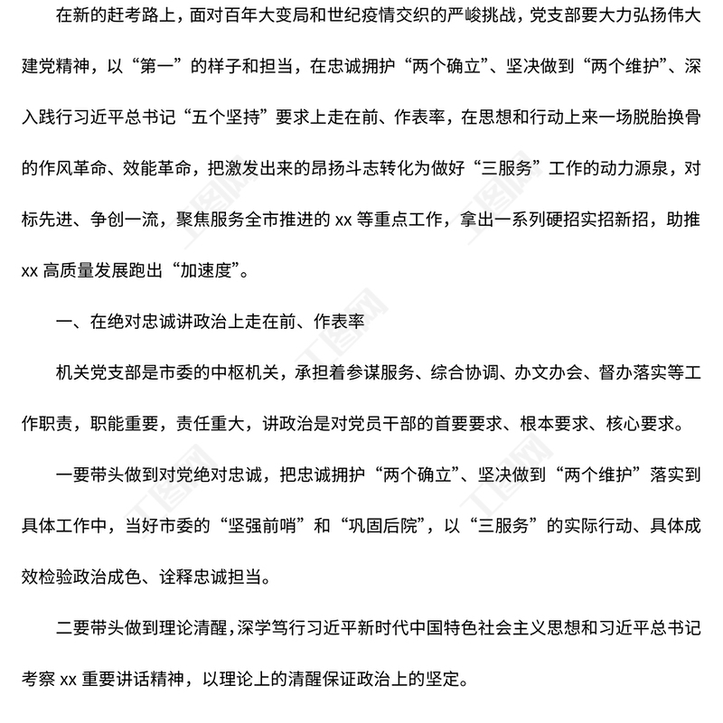 > 黨課講稿 > 2023走在前作表率對標先進爭創(chuàng)一流PPT紅色精美風(fēng)黨員干部學(xué)習(xí)教育專題黨課黨建課件模板(講稿).DOCX 【圖片、文字、動畫均可編輯】