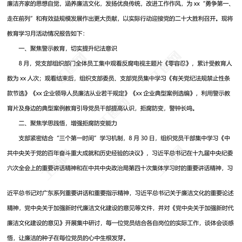 首頁 > WORD文檔 > 黨風(fēng)廉政 > 2022年黨風(fēng)廉政建設(shè)宣傳教育月活動總結(jié)范文3篇.DOCX 【圖片、文字、動畫均可編輯】