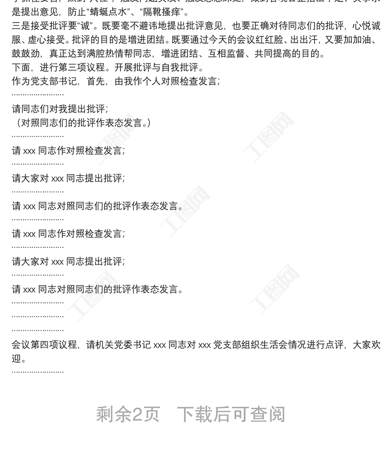 工圖網(wǎng)提供黨支部年終組織生活會(huì)暨民主評(píng)議黨員大會(huì)主持詞供會(huì)員免費(fèi)下載。更多精彩黨課PPT素材,盡在工圖網(wǎng)。