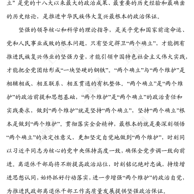 > 交流研討座談 > 深刻領(lǐng)悟“兩個確立”的決定性意義進(jìn)一步增強(qiáng)“兩個維護(hù)”的政治自覺研討發(fā)言.DOCX 【圖片、文字、動畫均可編輯】
