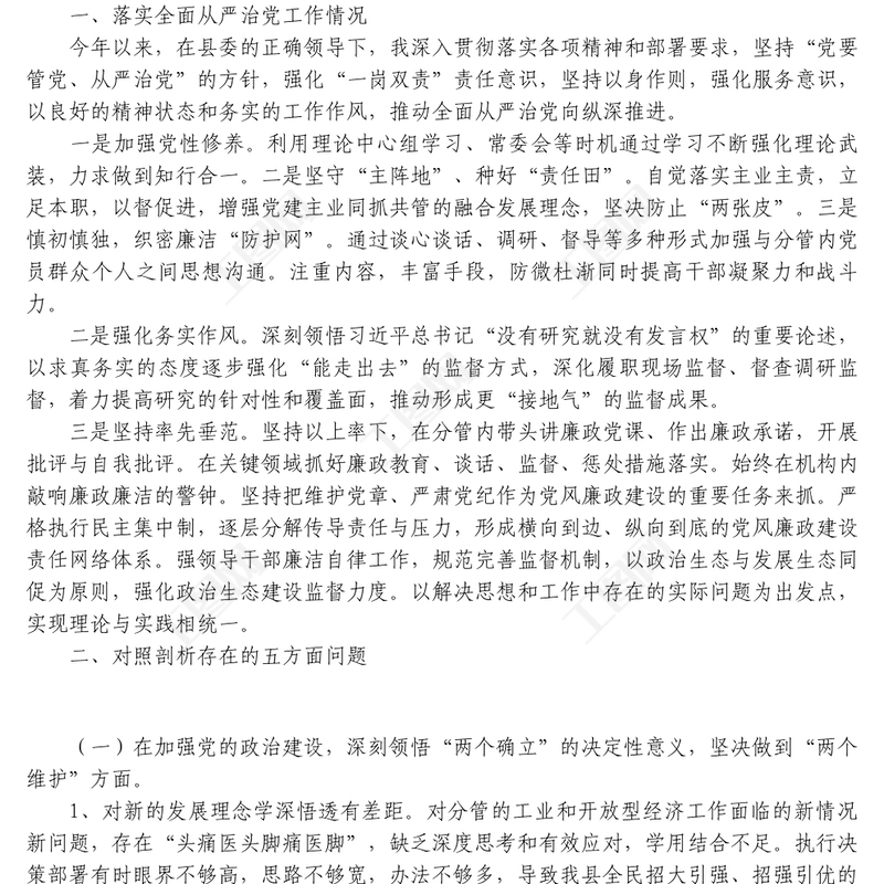 全面從嚴治黨五個方面?zhèn)€人對照檢查材料