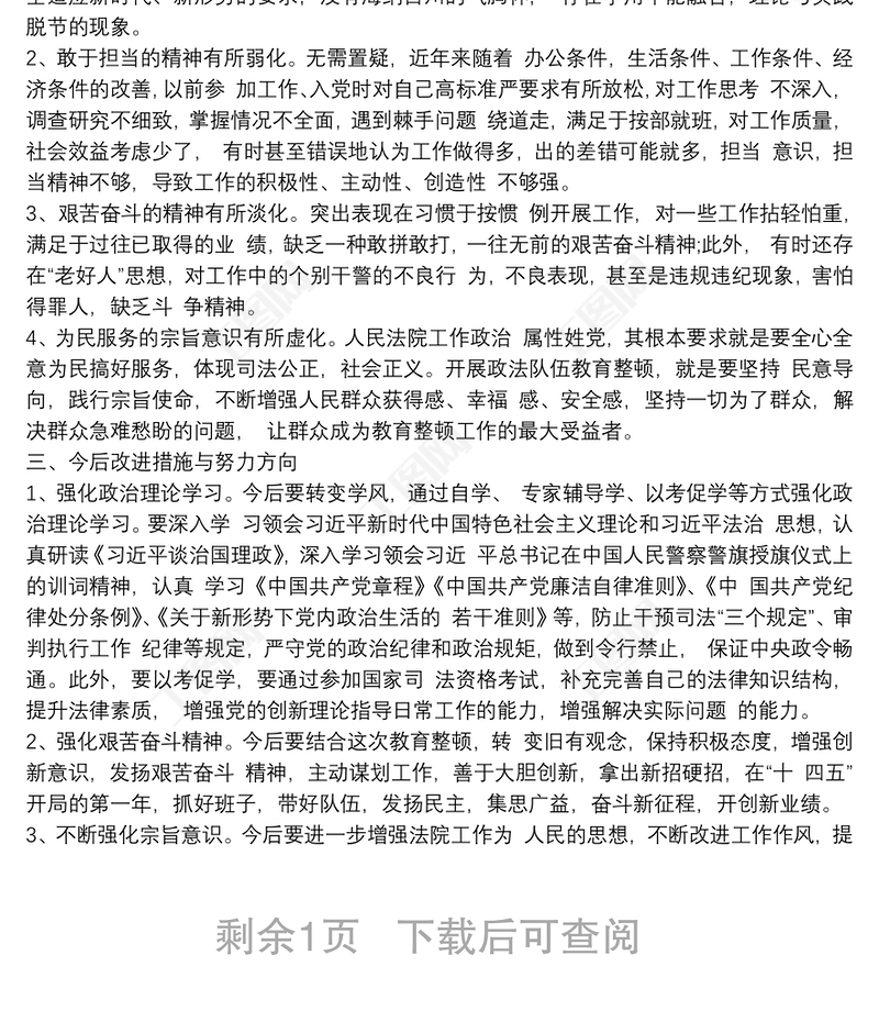 工圖網(wǎng)提供法院領(lǐng)導(dǎo)干部政法隊(duì)伍教育整頓民主生活會(huì)個(gè)人對(duì)照檢查發(fā)言提綱供會(huì)員免費(fèi)下載。更多精彩黨課PPT素材,盡在工圖網(wǎng)。