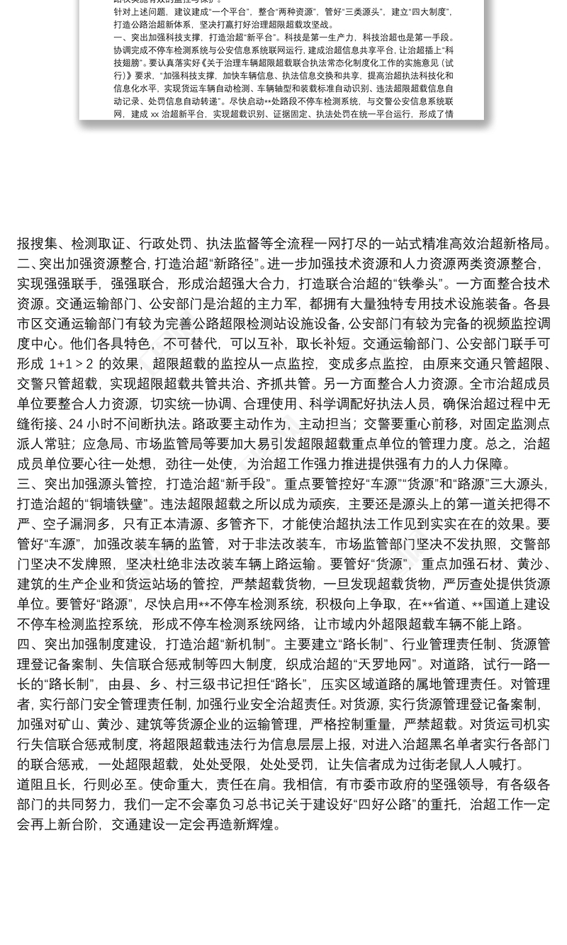 建設(shè)平安交通推進(jìn)治理超限超載經(jīng)驗(yàn)交流材料