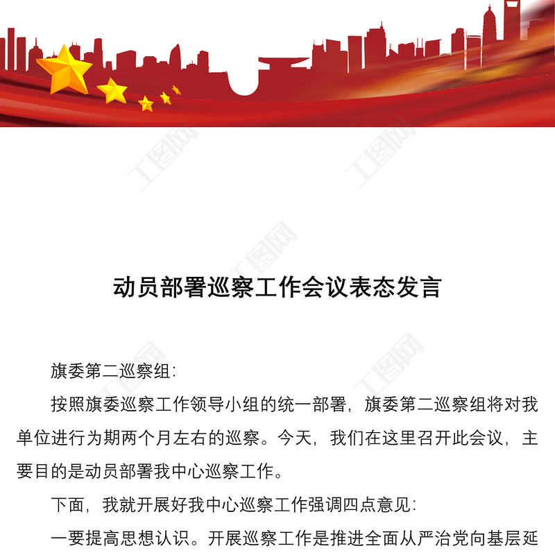工圖網(wǎng)提供2021動(dòng)員部署巡察工作會(huì)議表態(tài)發(fā)言供會(huì)員免費(fèi)下載。更多精彩黨課PPT素材,盡在工圖網(wǎng)。