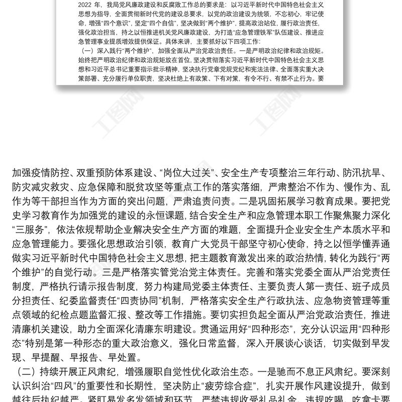 2021年黨風(fēng)廉政建設(shè)黨課講稿及講稿2022年黨風(fēng)廉政建設(shè)警示教育材料2021紀(jì)委書記在學(xué)校黨風(fēng)廉政建設(shè)工作會(huì)議上的講話2022年全面從嚴(yán)治黨黨風(fēng)廉政建設(shè)工作總結(jié)2022幼兒園黨風(fēng)廉政建設(shè)黨課講稿2023年黨風(fēng)廉政建設(shè)黨課講稿2021年下半年黨風(fēng)廉政建設(shè)兩個(gè)責(zé)任分級(jí)約談?wù)勗拑?nèi)容2022黨風(fēng)廉政建設(shè)黨課講稿2022年黨風(fēng)廉政建設(shè)工作會(huì)議上的報(bào)告基層黨風(fēng)廉政建設(shè)黨課講稿2022年黨風(fēng)廉政建設(shè)和反腐倡廉黨委書記講話稿2022年黨風(fēng)廉政建設(shè)工作會(huì)上的報(bào)告醫(yī)院2021年黨風(fēng)廉政建設(shè)工作總結(jié)2021黨史學(xué)習(xí)教育及加強(qiáng)黨風(fēng)廉政建設(shè)黨課制定下發(fā)2022年黨風(fēng)廉政建設(shè)工作要點(diǎn)和全面從嚴(yán)治黨責(zé)任清單與各科室負(fù)2022關(guān)于上半年黨風(fēng)廉政建設(shè)工作情況的通報(bào)