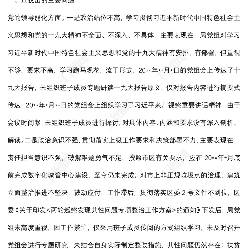 X住建局黨委班子巡察整改專題民主生活會(huì)對(duì)照檢查材料包含