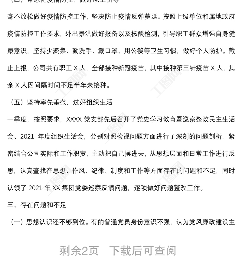 工圖網(wǎng)提供國企黨支部第一季度黨風(fēng)廉政建設(shè)和反腐敗工作報告供會員免費下載。更多精彩黨課PPT素材,盡在工圖網(wǎng)。