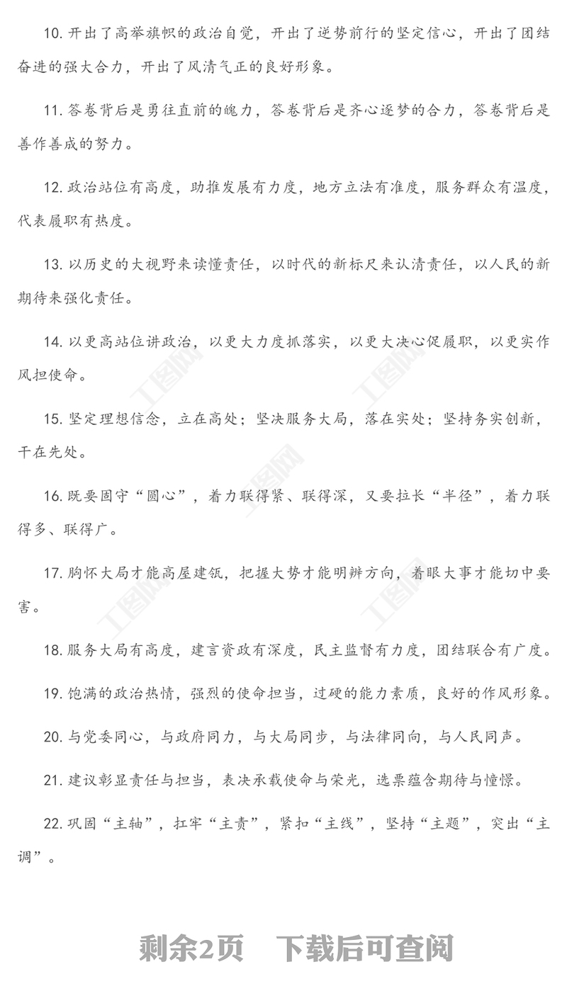 工圖網(wǎng)提供“參政議政”有關(guān)排比句大全(45條)供會(huì)員免費(fèi)下載。更多精彩黨課PPT素材,盡在工圖網(wǎng)。